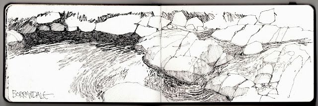 "Once paper, pen-and-ink-well have been brought to table, Victor Hugo sits down and without making a preliminary sketch, without any apparent preconceptions, sets about drawing with an extraordinary sure hand not the landscapes as a whole but any old detail."